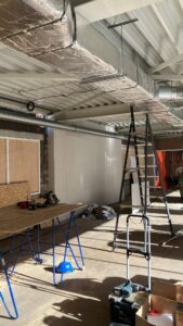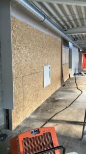 Op dit moment zijn we druk bezig met de sloop: de oude toestellenberging, de gevelbeplating en een deel van het plafond worden verwijderd om plaats te maken voor iets nieuws.