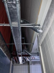 Op dit moment zijn we druk bezig met de sloop: de oude toestellenberging, de gevelbeplating en een deel van het plafond worden verwijderd om plaats te maken voor iets nieuws.