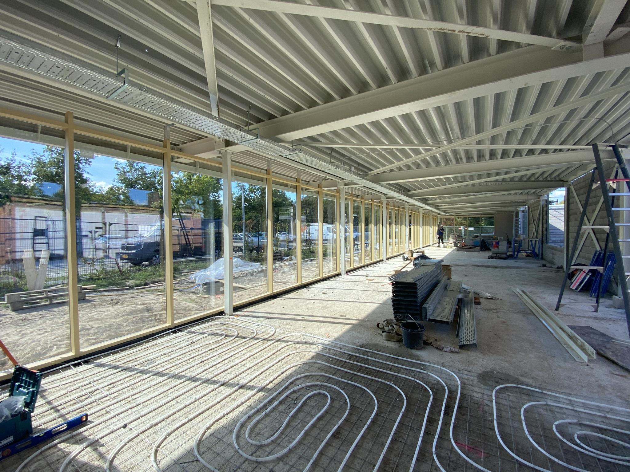 Deze week is het laatste deel van de fundering gestort, waardoor de contouren van de nieuwe sporthal nu duidelijk zichtbaar zijn. Volgende week starten we met de staalconstructie. Bijzonder is dat we zo’n 40 tot 50% van het bestaande staal hergebruiken, waardoor we niet alleen kosten en materiaal besparen, maar ook nog eens heel duurzaam bouwen!